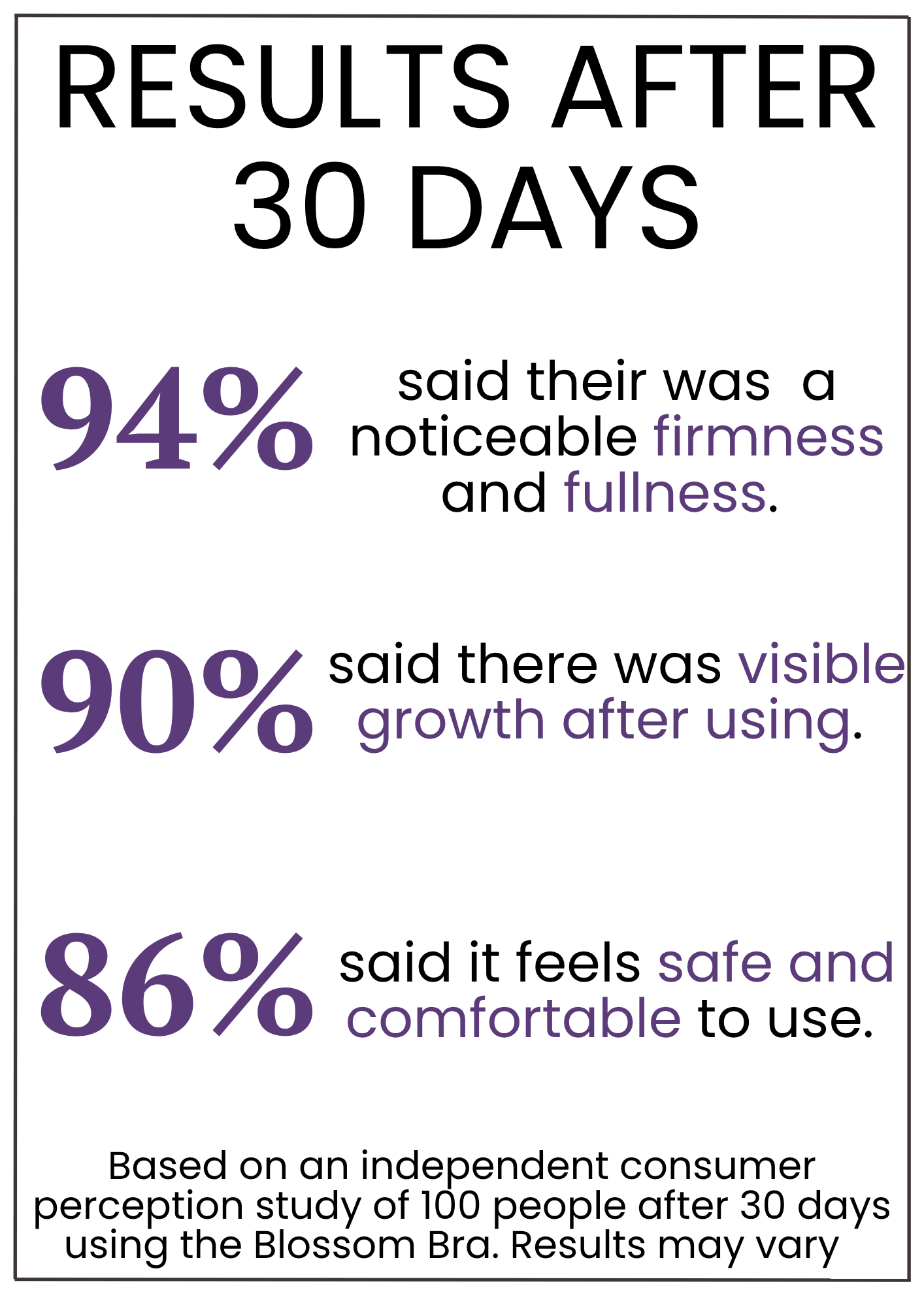 Consistent, simple routines lead to the biggest changes. That’s why customers using the Blossom Bra for just 30 minutes a day over 30 days reported noticeable improvements in shape, lift, and confidence. It’s a gentle, effortless addition to your day — and the feedback speaks for itself.